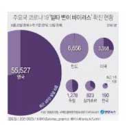 김은진 방대본 검사분석팀장은 "2~3차 유행 때 바이러스보다 최대 20배 이상의 바이러스 배출량이 많아진 것으로 확인됐다"며 "1차 유행 당시보다 발병 당일에는 300배가량 많은 바이러스 배출량이 관찰됐다"고 말하였습니다.