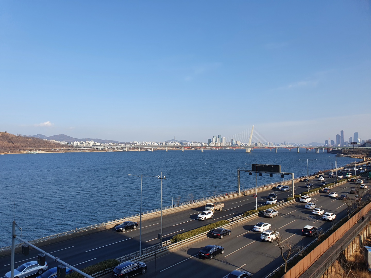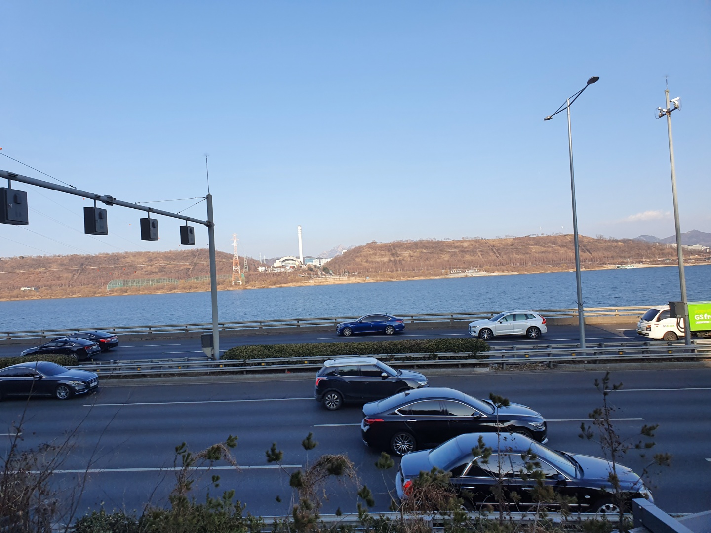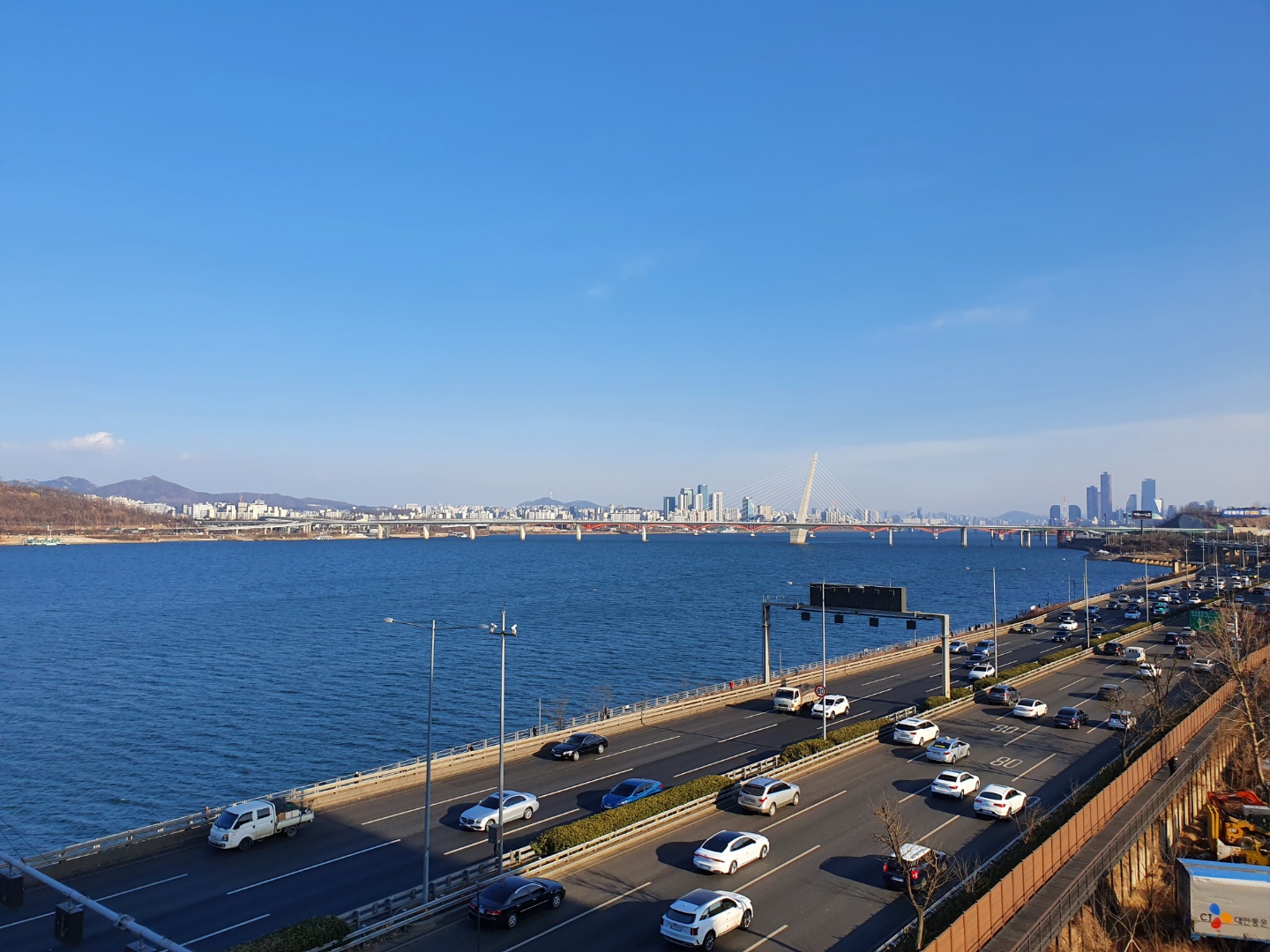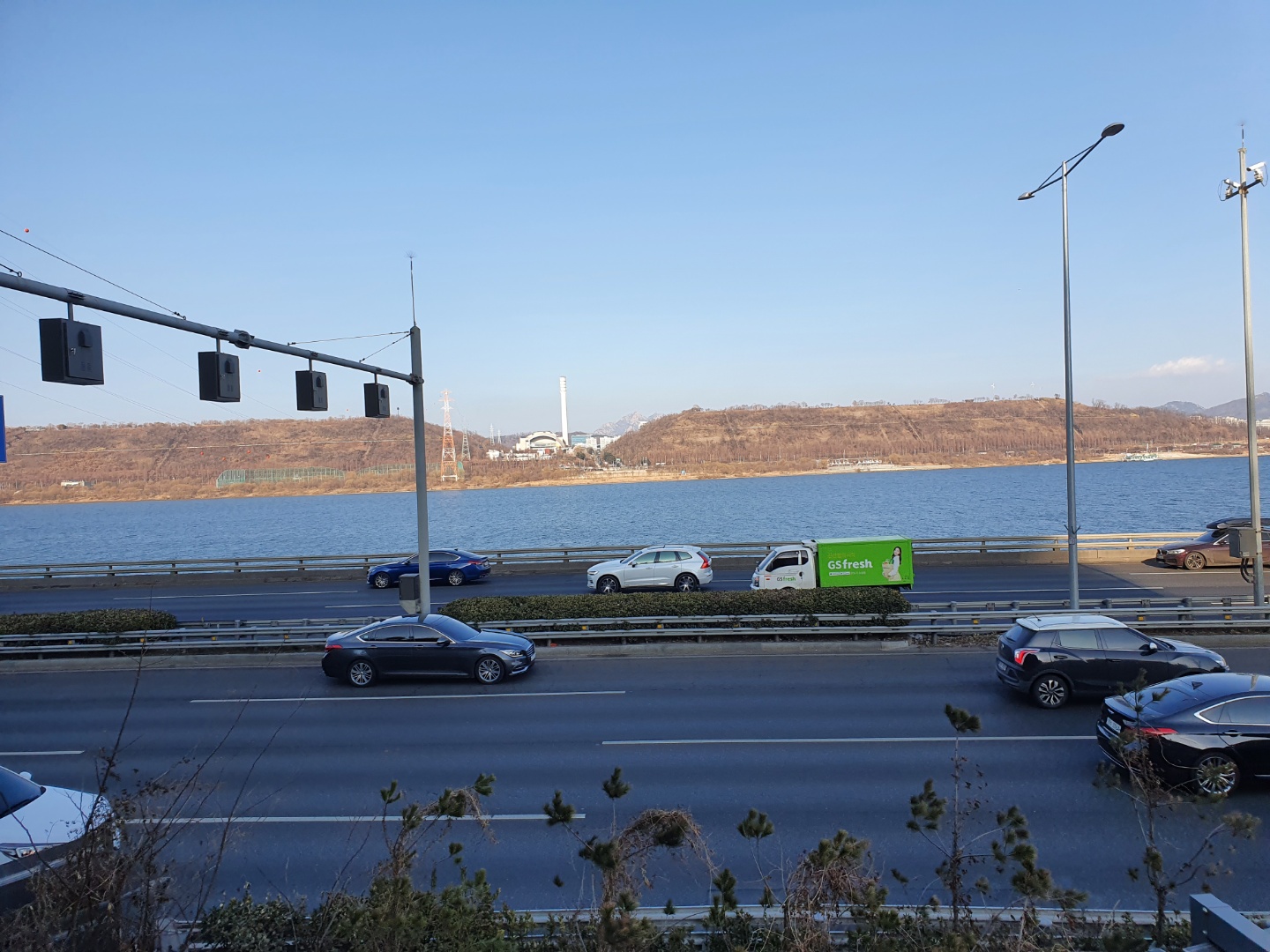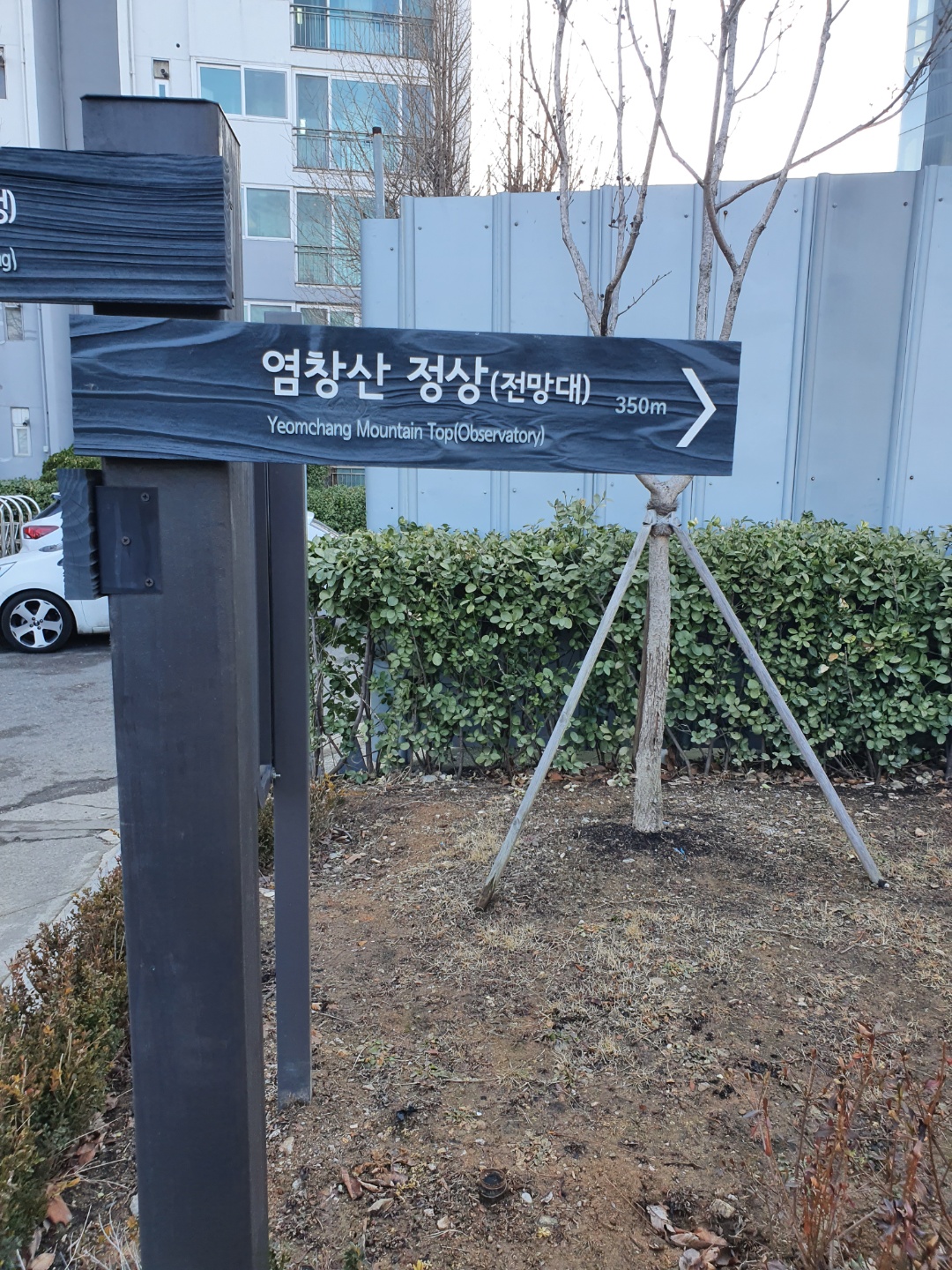 드디어 이름도 알았다 염창산 정상(전망대) 음 이런곳이 산이라기 보다는 동산이다 근데 진짜 옆에 차가 너무 많이 다녀서 마스크 쓰길 잘했다 생각했다 매연을 직격탄으로 맞기는 하지만 그만큼 올라가서 볼 뷰가 있기에 렛츠고 한다